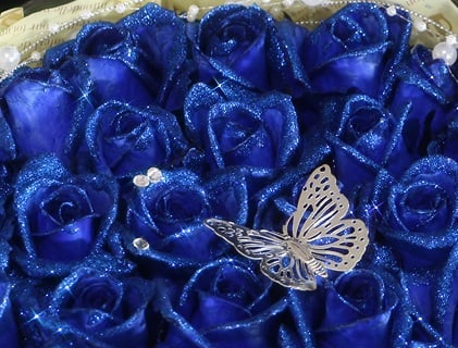 花弁にラメをあしらった、きらきら煌く宝石のような青いバラには、「あなたのとりこ」という花言葉があります。